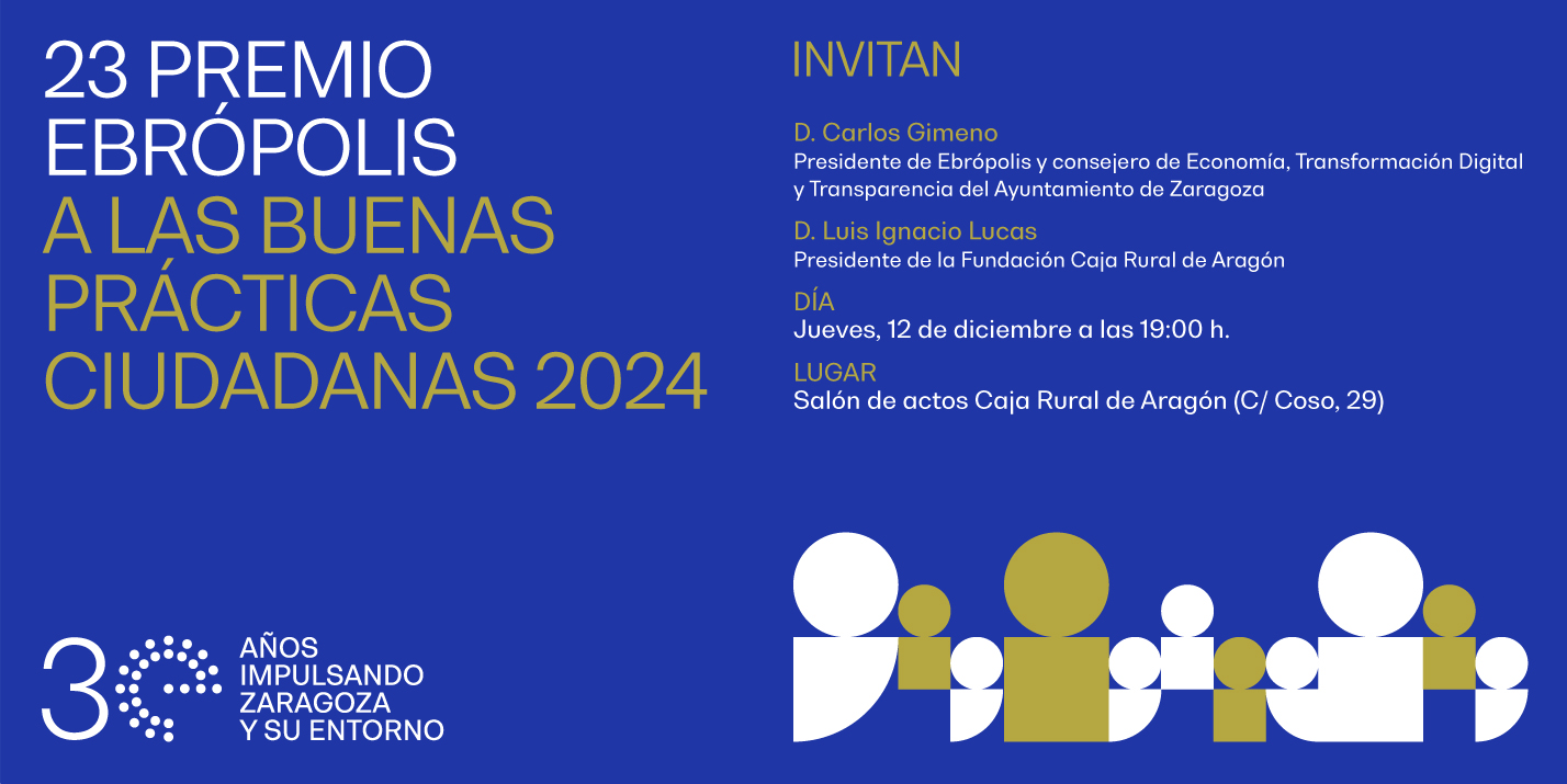 Esta iniciativa nos llena de orgullo a todos los que formamos parte de la familia Ebrópolis y es posible gracias a algunas de las entidades miembro de la asociación: Aragón Televisión, Ayuntamiento de Zaragoza, Fundación Caja Rural de Aragón, Fundación Caja Inmaculada, Fundación Ibercaja, Instituto Aragonés de Fomento, Radio Zaragoza y Universidad de Zaragoza. T